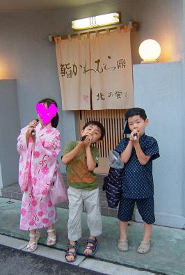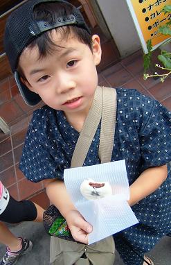 ゑびす庵で、アンマンをもらいこれもその場でパクリ☆お腹も補充。行啓通に面していないお店を回りテトラ付まで行く。やきとりとん兵衛は、恒例の縁日コーナーになってました。去年はヨーヨーでしたが今年は風船。個人宅であめすいくいという趣向をこらしたものもありました。いつも気になる寿司のかわむらでは、なんとかんぴょう巻き1本。みんなでほおばりました。親には一口しかくれないし・・・