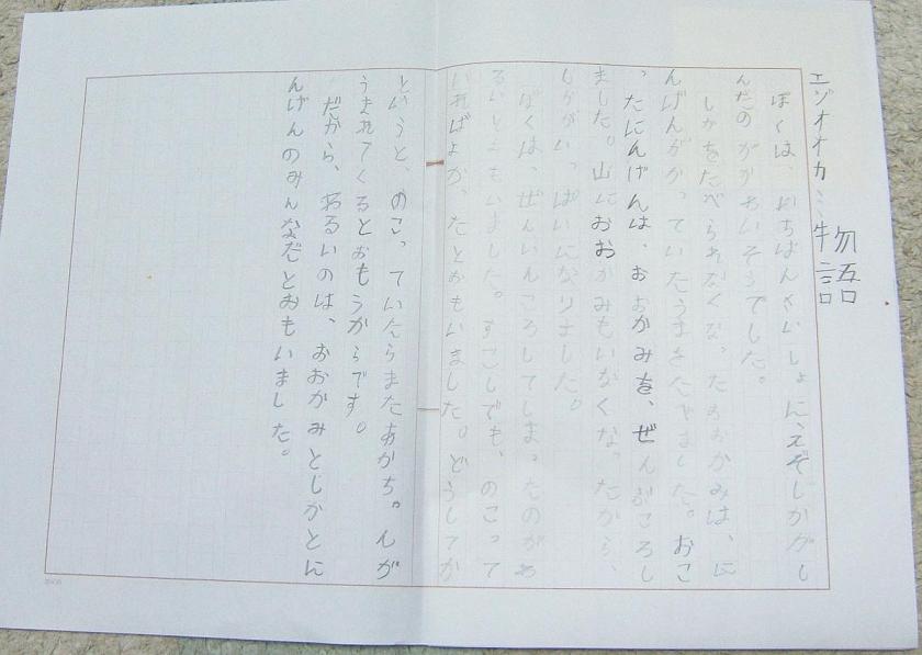 感想文って面倒くさいけど、まだ柊生はよくわかっていないはず。嫌いだとかわかる前に作文を書く練習をさせて見たいと思う。